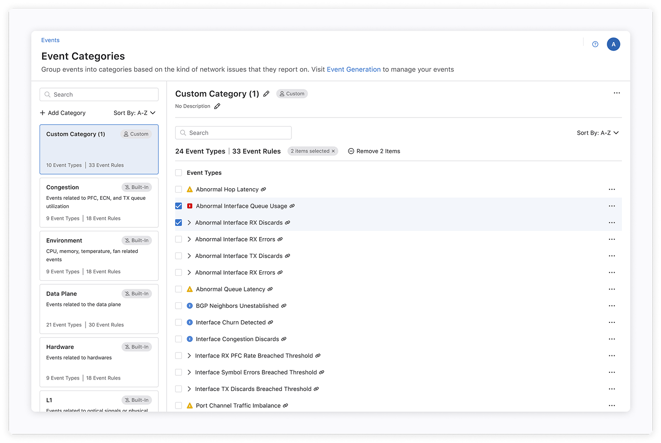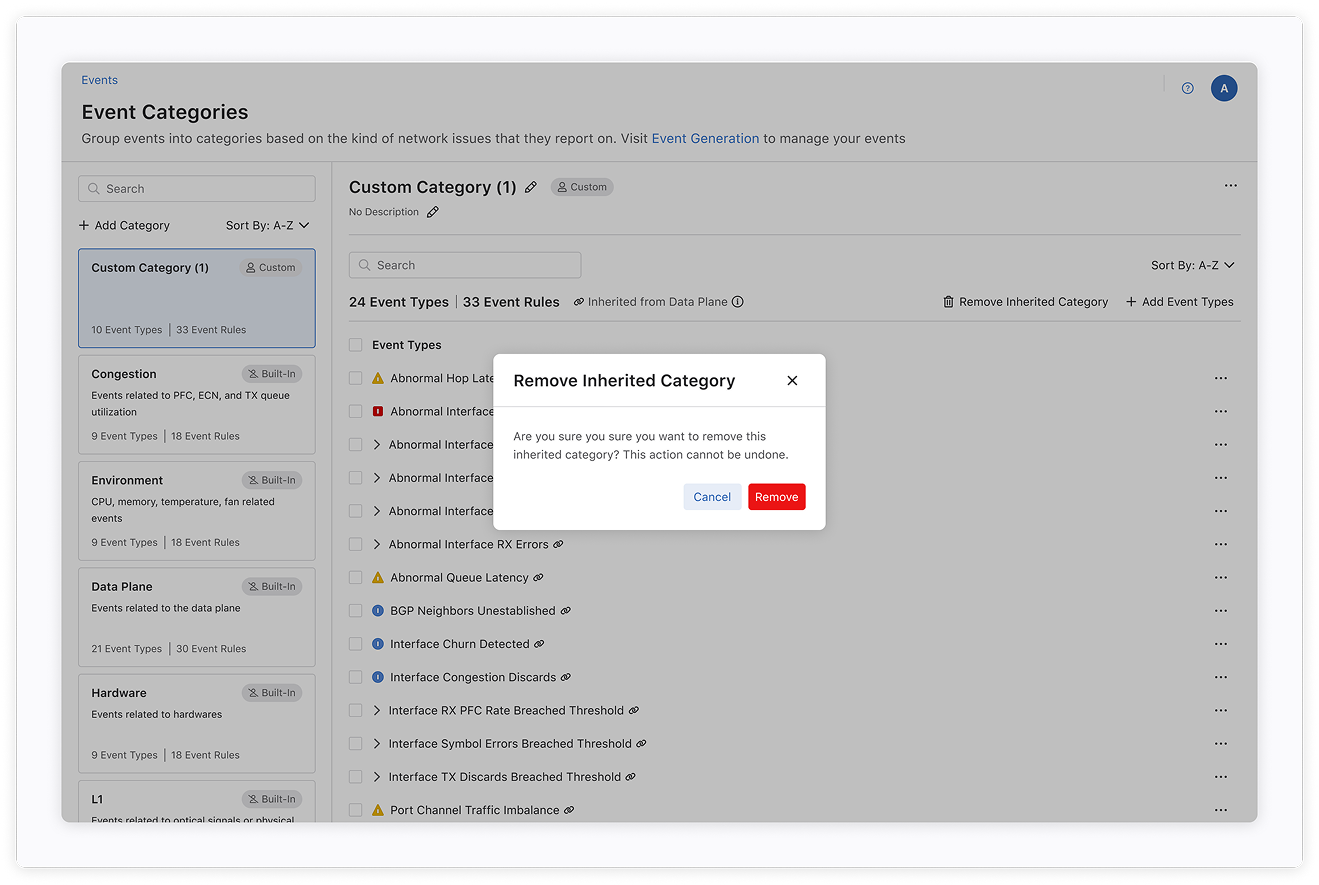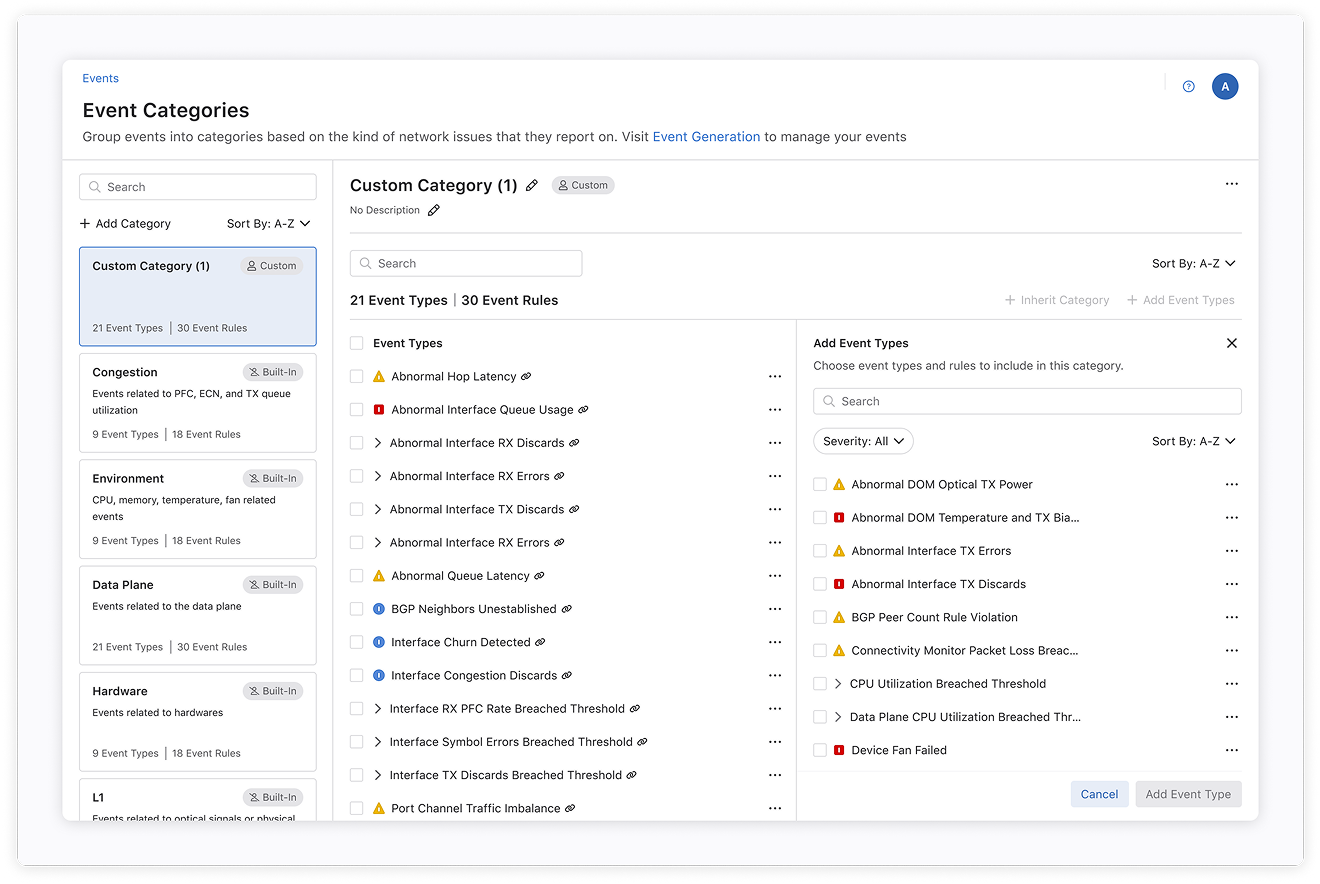 Before users begin creating custom categories, they first need to generate Events—defining what types of network behaviors should be tracked and alerted. While the Event creation flow was not part of my design scope, it's a critical step that informs how and why users organize these Events into categories.